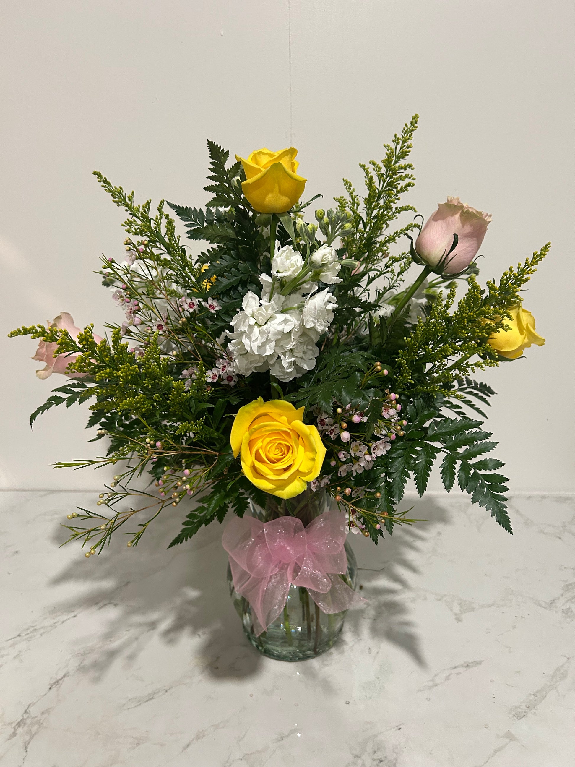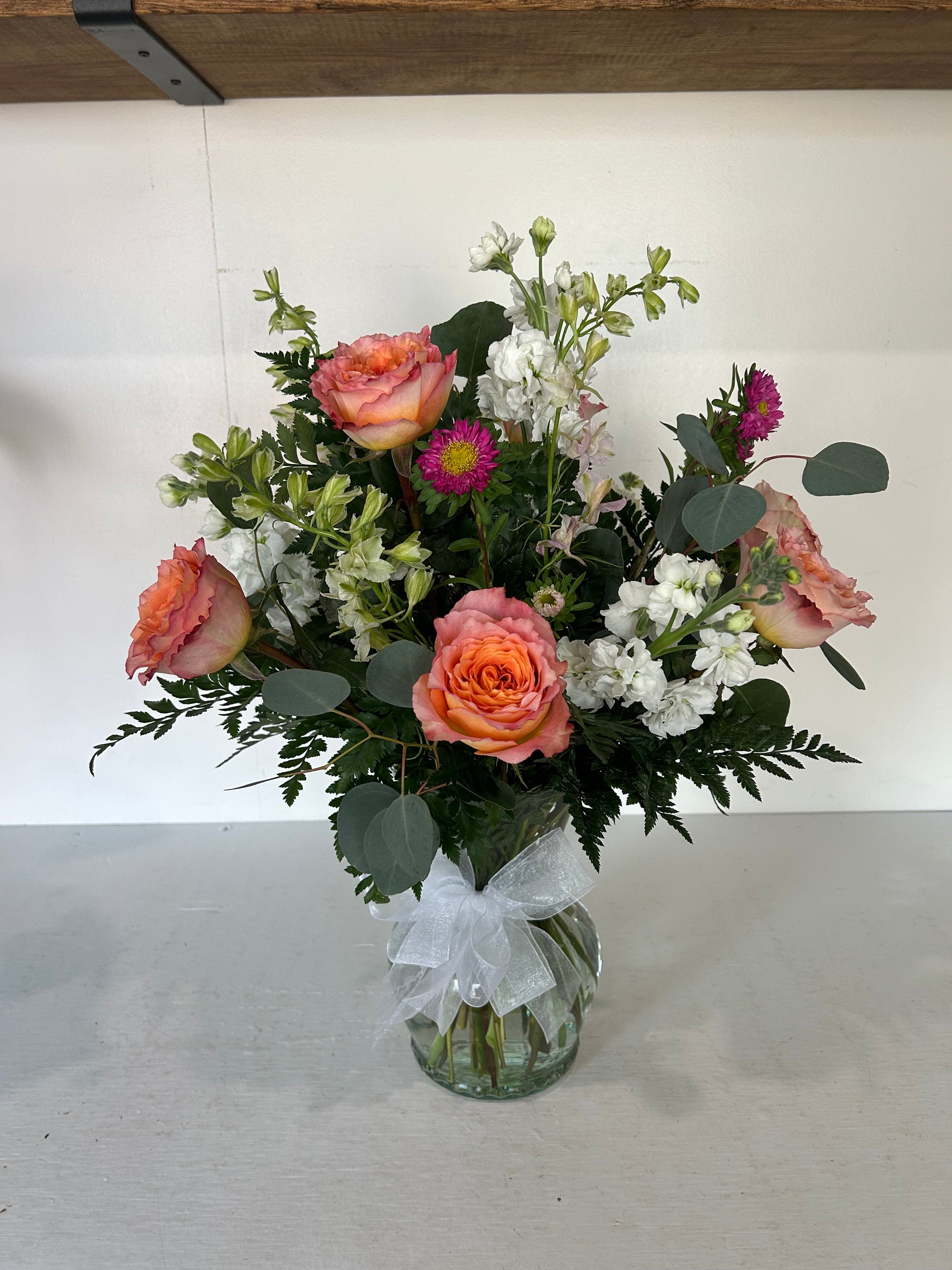 Classic and charming, it’s guaranteed to leave them blushing. Created with a beautiful combination of designers choice flowers.